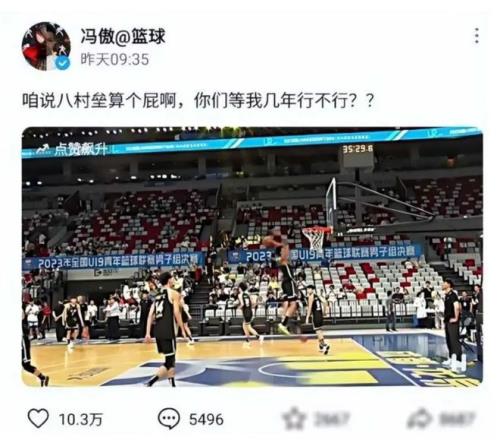 值得一提的是,馮傲曾經在社交媒體上表示,等他幾年就能超過日本混血前鋒八村塁。