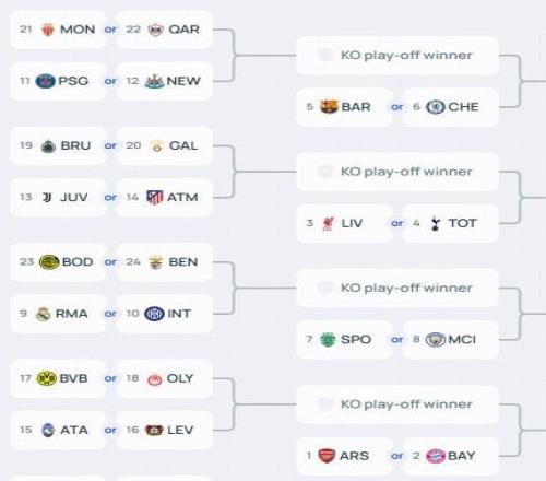 北京時間1月29日,歐冠聯(lián)賽階段結束了全部比賽的角逐。至此,歐冠淘汰賽的四大分區(qū)也正式落位完成。被本菲卡踢進附加賽的皇馬將與曼城同區(qū),巴薩、切爾西則將與大巴黎同區(qū)。